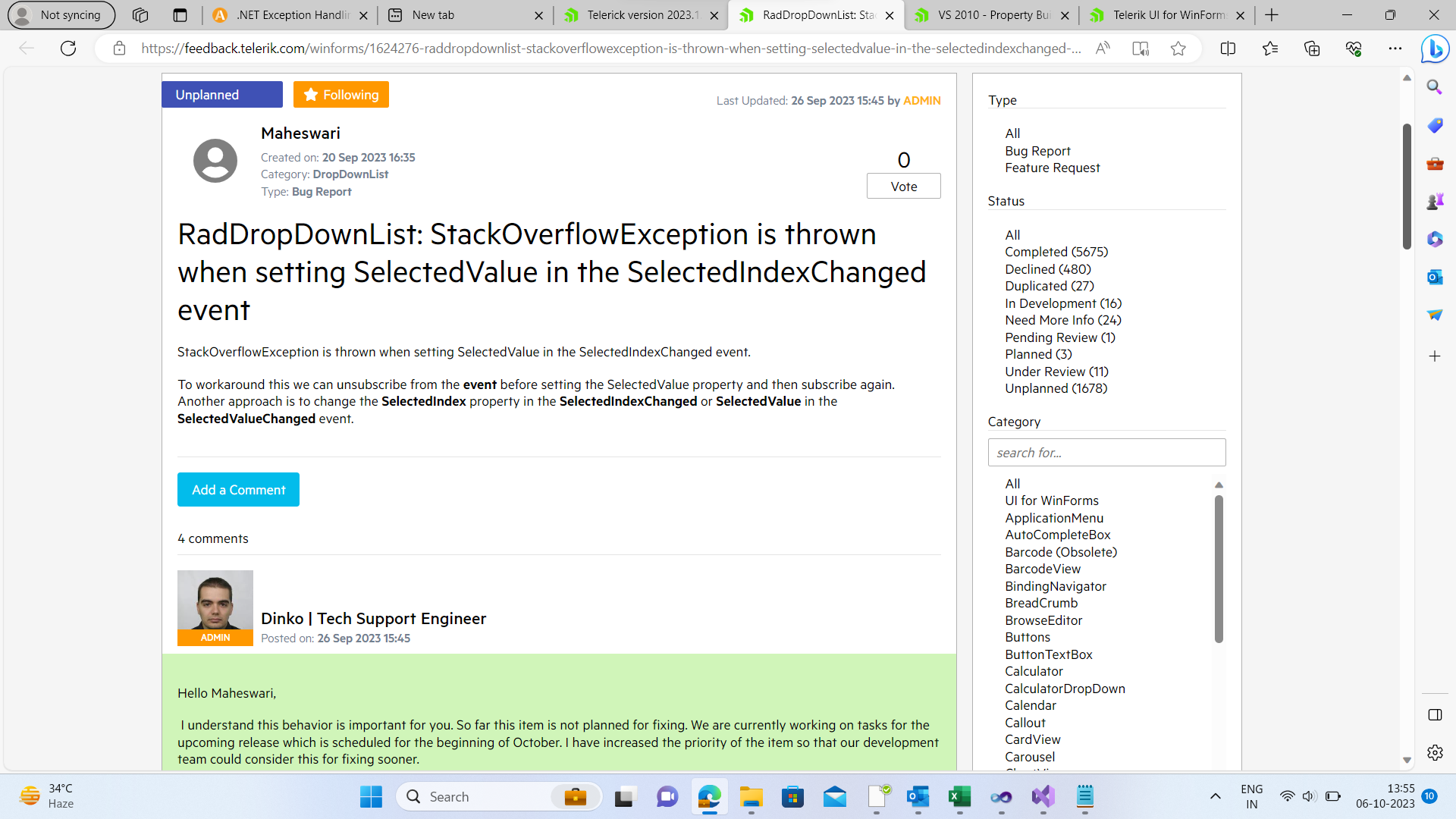 We are expecting for your latest Telerik 2023 dll (which should resolve stachoverflow issue). When it will be resolved and when will you release?