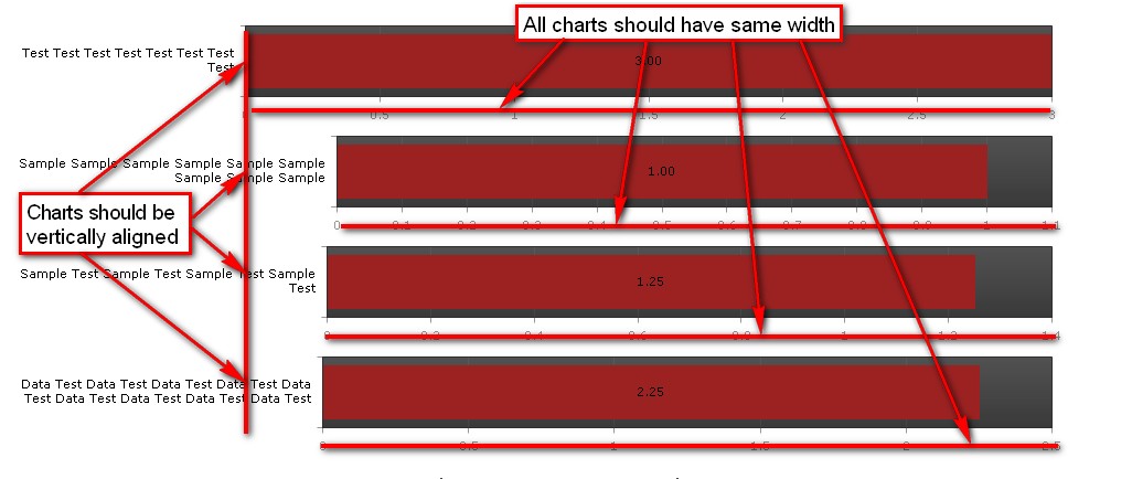 I have a web page which contains multiple telerik radcharts.I have programetically created these radcharts as shown in the attachment. But these charts are not in alignment. I want them to be properly aligned based to their y-axis line i.e. i want to vertically align them based on their plot area. Also i want to set the width for plot area through code so that all the charts are of same width.