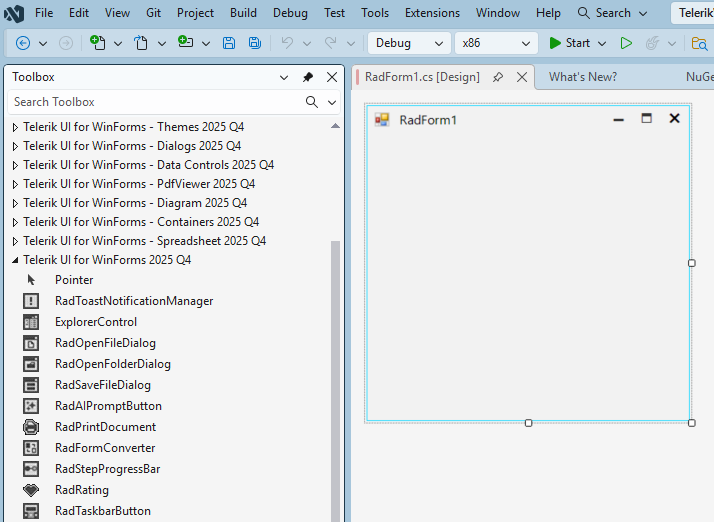 3. But i can not see Telerik Compoment in ToolBox and somethingwrong in the new Telerik Winform Project