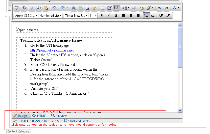 I am getting "Click Auto Correct on the toolbar to remove invalid content or formatting". I am not able to figure out where auto correct icon is in toolbar. Will apreciate if someone can help me on that.