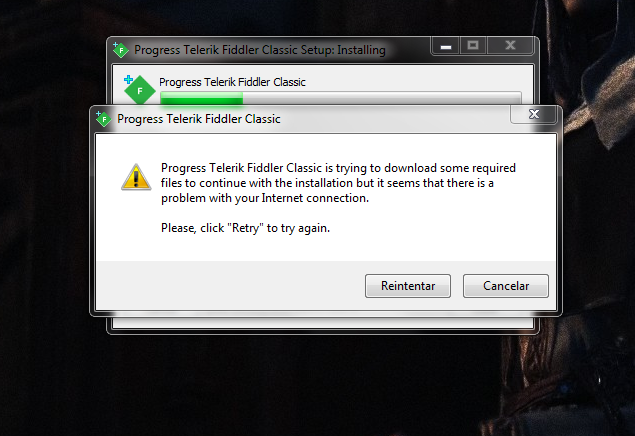 Needless to say I've no idea why my Internet Connection would be the issue, as I'm using it right now to write this. I've already tried running the installer as administrator, compatibility mode, disabling my antivirus and even the firewall to no use.