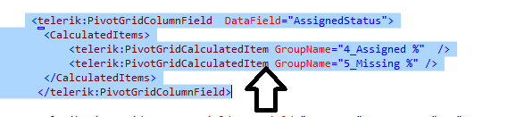 PivotGridCalculatedItem item = calItems.Where(x => x.GroupName ==