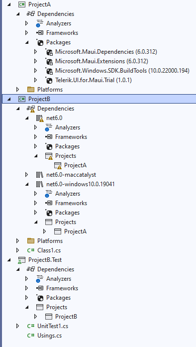 I got a error when we added Telerik.UI.for.MAUI.Trial 1.0.1 reference into my MAUI class libraries, It said Project XXX is not compatible with net6.0 (.NETCoreApp,Version=v6.0). Project XXX supports: net6.0-windows10.0.19041 (.NETCoreApp,Version=v6.0)