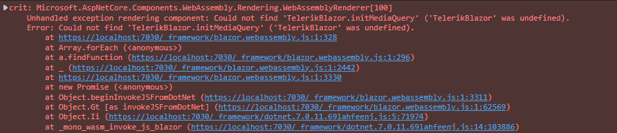 Could not find 'TelerikBlazor.initMediaQuery' ('TelerikBlazor' was undefined).