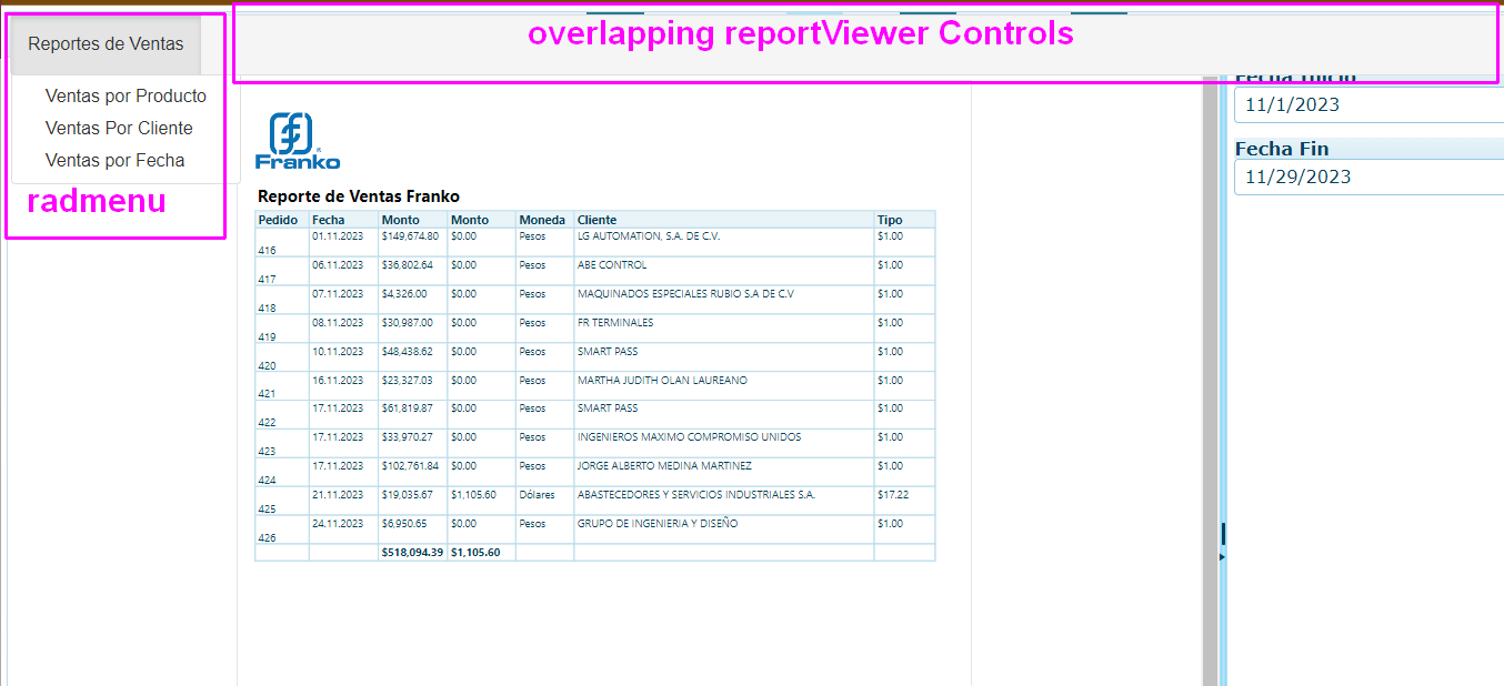 <style> #reportViewer1 { position: relative; z-index: 1000; /* Ensure this number is higher than the RadMenu's z-index */ } </style>Adjust the z-index of the RadMenu: If you can modify the z-index of the RadMenu to be lower than the ReportViewer, that could also solve the problem.