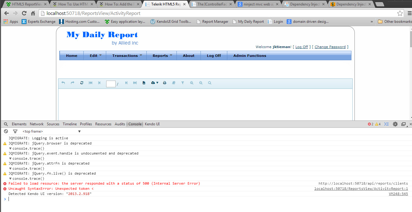 The IControllerFactory 'CNX.WebUI.Infrastructure.NinjectControllerFactory' did not return a controller for the name 'MenuReport'.Does Telerik have any tutorials on how to use this new report viewer in conjunction with Ninject?