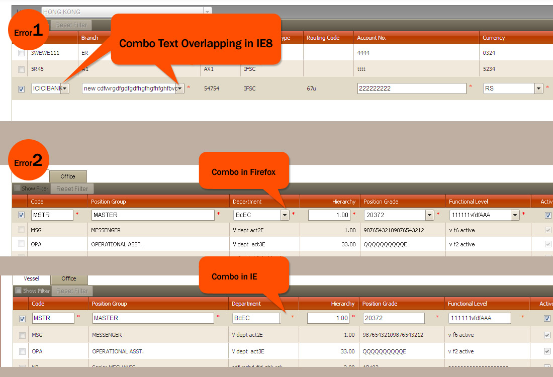 Error 1. ComboBox Text is overlapping Error 2. ComboBox Selecting Node Missing (When clicking "Edit" it willnot render theNode But when we click "Add" it is showing node) Only in IE (Internet Explorer). Checked Version IE8.