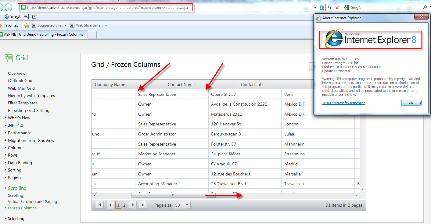 Freeze column fetature of RadGrid is not working correctly in IE8.
