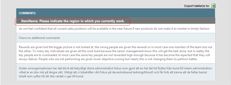 "ItemName:" it must be same as before like "Please indicate the region in which you currently work."