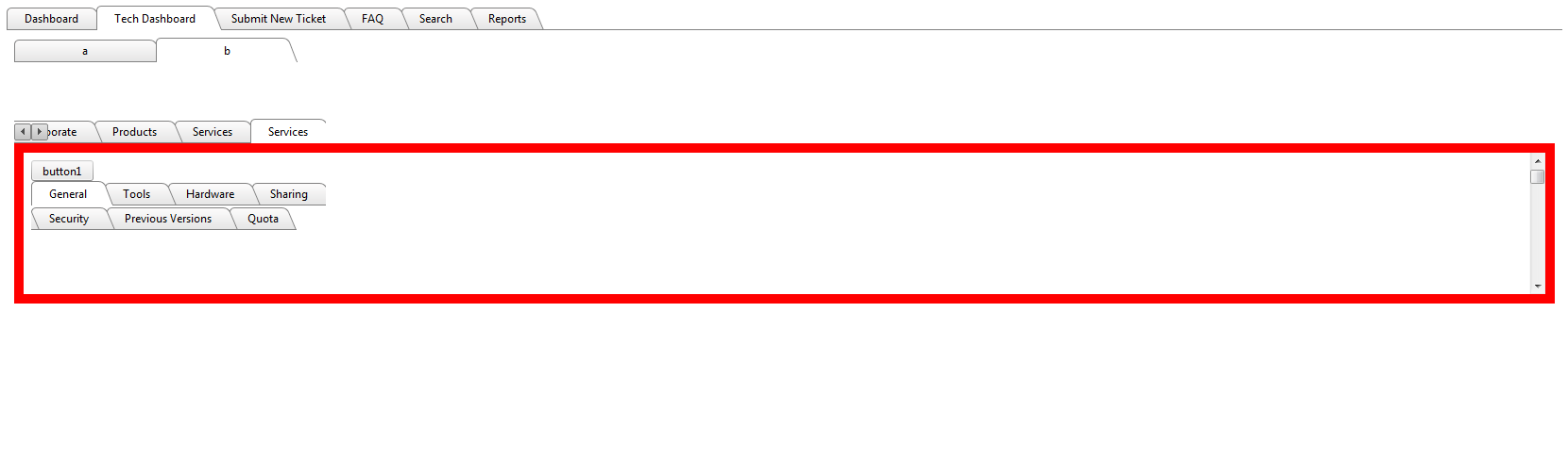 <telerik:RadTabStrip ID="RadTabStrip1" runat="server" MultiPageID="RadMultiPage1" SelectedIndex="0" ShowBaseLine=true EnableEmbeddedSkins="True" style="z-index:1000" Skin="Default" CssClass="tabStrip" Width="100%" ClickSelectedTab="True" EnableAjaxSkinRendering=true> <Tabs> <telerik:RadTab Text="Dashboard" > </telerik:RadTab> <telerik:RadTab Text="Tech Dashboard"> </telerik:RadTab> <telerik:RadTab Text="Submit New Ticket"> </telerik:RadTab> <telerik:RadTab Text="FAQ"> </telerik:RadTab> <telerik:RadTab Text="Search"> </telerik:RadTab> <telerik:RadTab Text="Reports"> </telerik:RadTab> </Tabs> </telerik:RadTabStrip> <telerik:RadMultiPage ID="RadMultiPage1" runat="server" SelectedIndex="0" > <telerik:RadPageView ID="RadPageViewDashBoard" runat="server" Height="1000px" width="100%" ContentUrl="UserDashboard.aspx" > </telerik:RadPageView> <telerik:RadPageView ID="RadPageViewTechDashboard" runat="server" Height="1000px" width="100%" ContentUrl="TechDashboard.aspx"> </telerik:RadPageView> <telerik:RadPageView ID="RadPageViewCreateNewTicket" runat="server" Height="1000px" width="100%" ContentUrl="CreateNewTicket.aspx" > </telerik:RadPageView> <telerik:RadPageView ID="RadPageViewFAQ" runat="server" Height="1000px" width="100%" ContentUrl="FAQ.aspx"> </telerik:RadPageView> <telerik:RadPageView ID="RadPageViewSearchTickets" runat="server" Height="1000px" width="100%" ContentUrl="./TechnicianPages/SearchTickets.aspx" > </telerik:RadPageView> <telerik:RadPageView ID="RadPageViewReporting" runat="server" Height="1300px" width="100%" ContentUrl="./TechnicianPages/Reports/Reporting.aspx" > </telerik:RadPageView> </telerik:RadMultiPage> </div>0