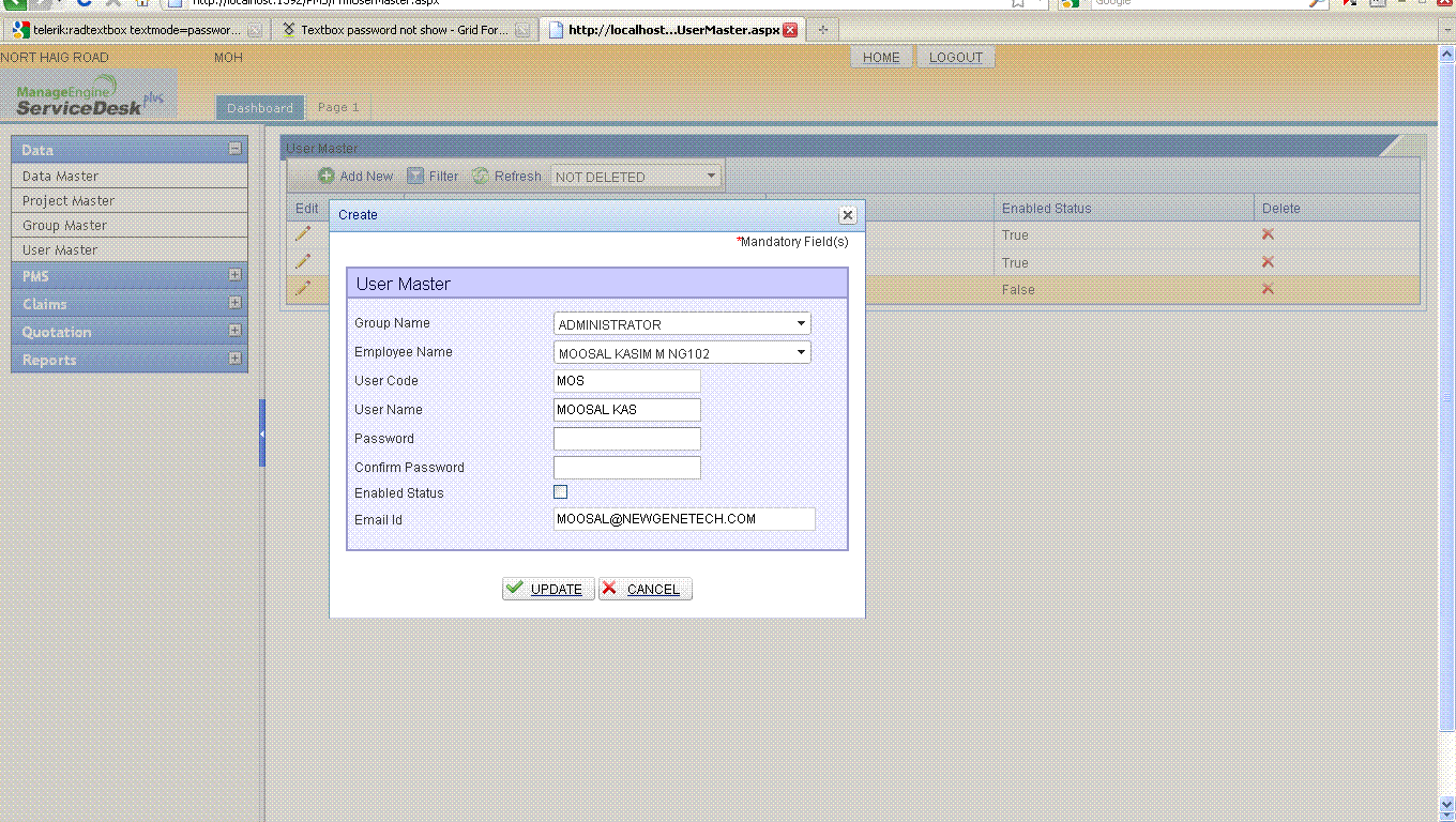 As far as I know, the value of a password RadTextBox should not appear in the browser, because this is a security issue. RadTextBox in password mode clears its value during its client-side initialization in order to remove any remembered passwords by the browser. If you want to have the password values available on the client, you should use a RadTextBox in a SingleLine TextMode. Hope this helps.