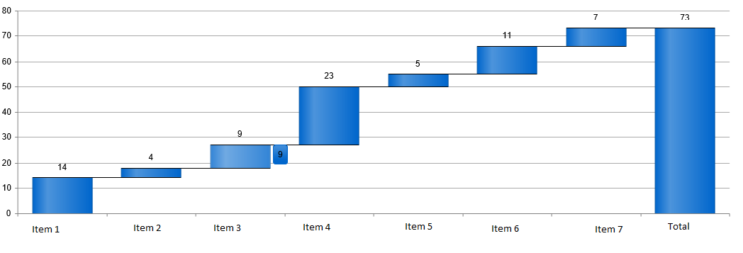 You can use BarSeries with set Y0 and Y properties in order to draw them starting at specific point - similar to How to: Create Range Chart (the example uses ReaSeries that can be replaced by BarSeries). The attached demo report illustrates such settings. It is a TRDP file that can be previewed in the Standalone Report Deisgner of R2 2017 and newer.