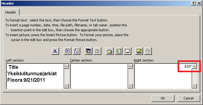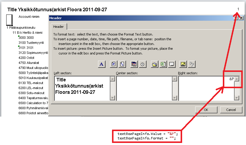 The "DefaultPageHeader" is set to "true" (page header renders into excel header):