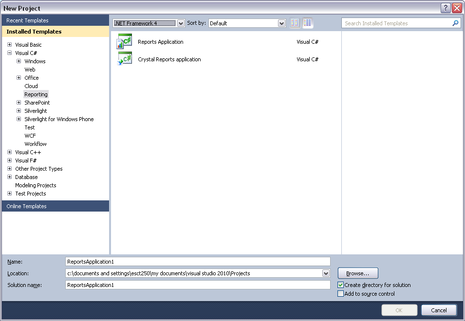 attachment telerikreporting2.png shows Telerik Reporting is NOT in the templates
