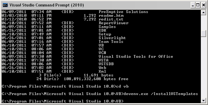 attachment telerikreporting3.png shows I ran the devenv.exe /InstallVSTemplates.
