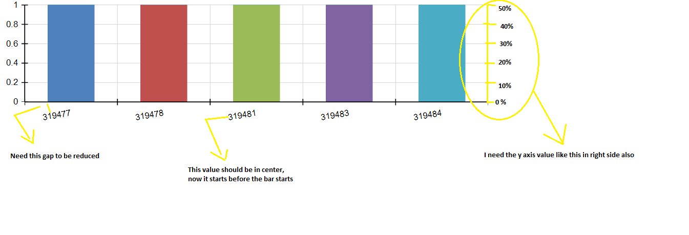 1) In the X axis, we are showing the value of the bar like 319477,319478 etc.,, I need the gap of value should be reduced