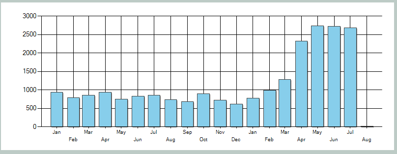 Capture2.png is what I actually see after configuring some more properties in the chart. As you will see in that image there is 10 grid columns but 19 data columns. The Bars draw over each other.