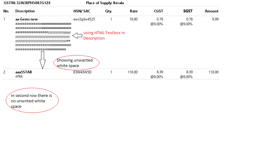 Each row of a Table/List/Crosstab item has the same height as the cell with the most content. Each row's height is determined depending on the visualized data. Based on the provided screen shot, I am afraid that I could not determine the exact cause of this strange behavior.