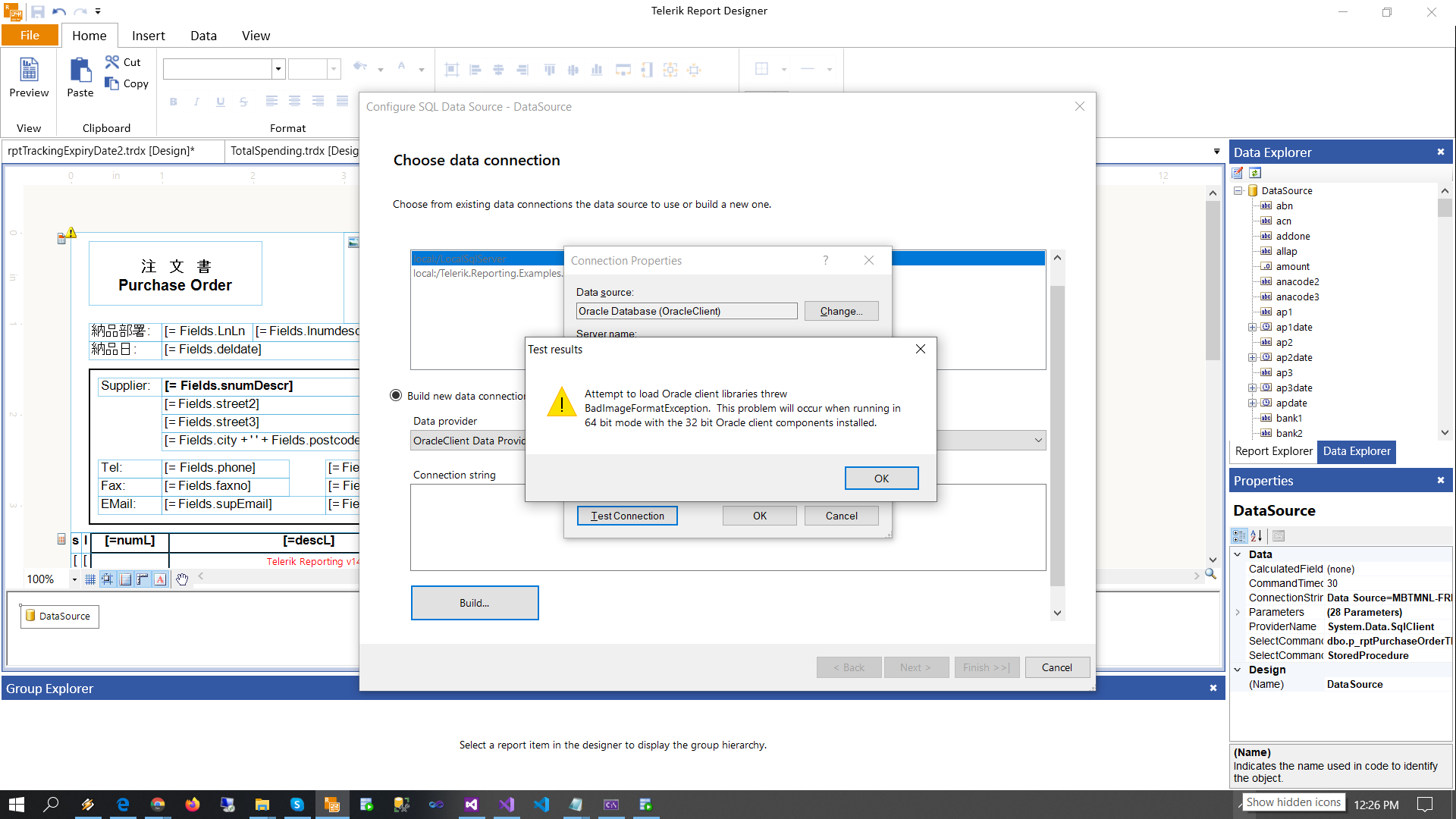 Downloaded and installed Telerik Report Designer to do some assessment. I am trying to connect to Oracle database for the report I've been working with. But when I click "Test Connection", I encountered this issue.