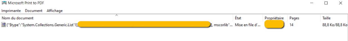 The report gets sent to the printer queue but nothing comes out of the printer, so I ended up thinking about the document name in the printer queue generated by TelerikReporting. This Document Name is very long and I think this might be the issue for some printers, this document seems to be generated from the typename of the list of ReportParameters (see the attached picture). Is it possible to change this name to something shorter ? I tried using the DocumentName property in the ReportDesigner on my trdp file but it did not change the name in the printer queue.