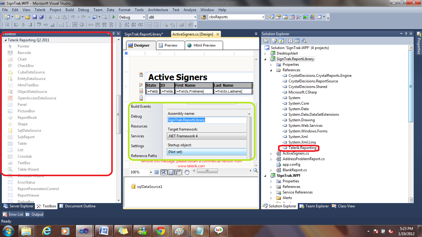 Telerik Reporting Q2 201’s reporting Controls are not drag able from tool box. I am using .NET framework 4.0 and VS 2010.