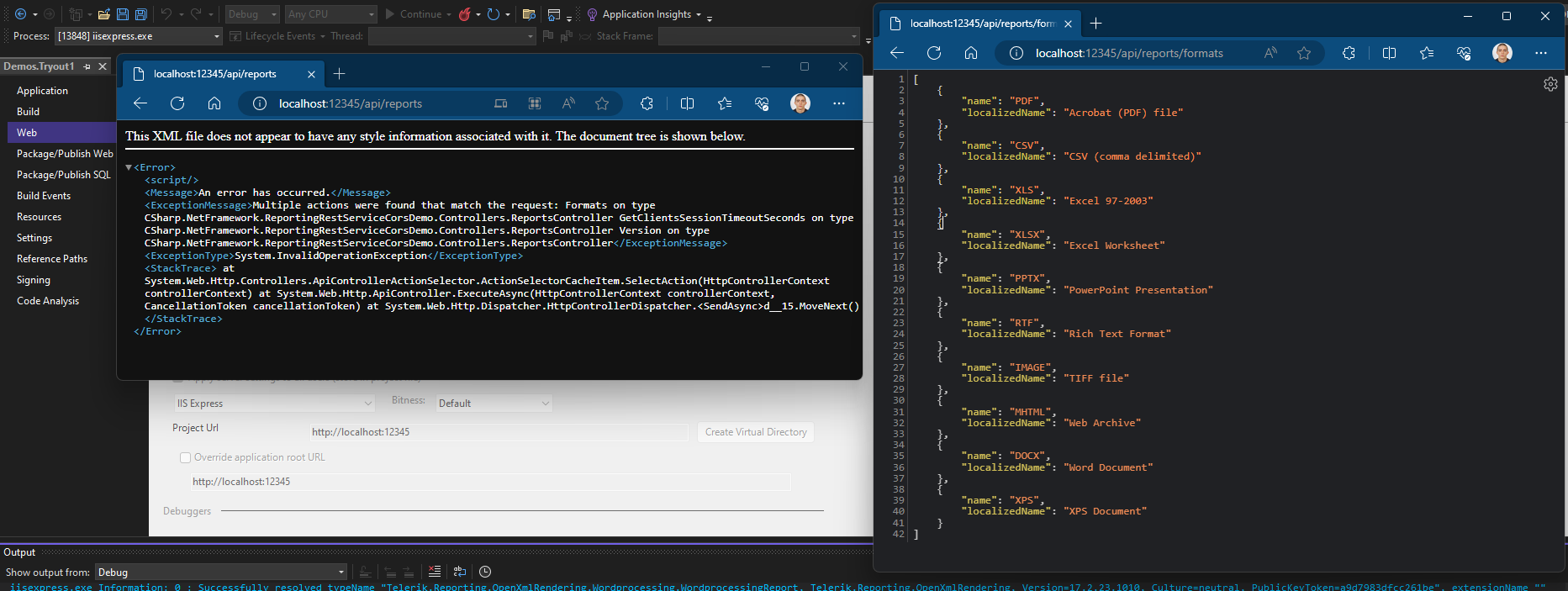 I'm trying in VS2019 the "Telerik Reporting REST Service" project template, however when trying to reach http://localhost:<port>/api/reports