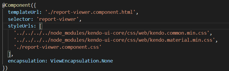 - Using Telerik Reporting for angular as stated in its docs Telerik-Reporting-For-Angular-CLI.