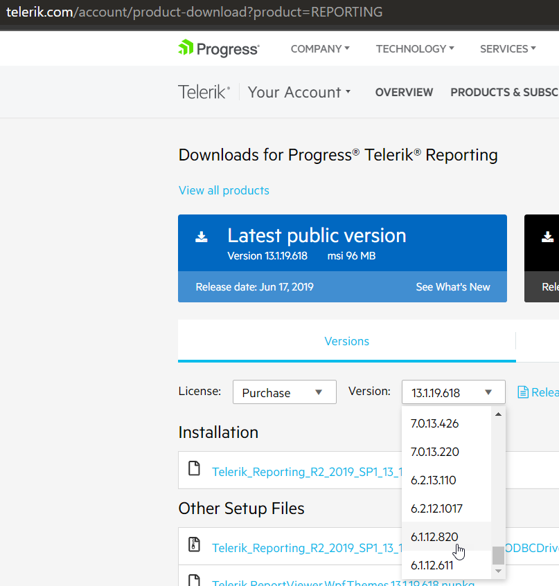 From where i can download and install telerik reporting Version=6.0.12.215. It automatically download the latest version. But i want the older version 6.0.12.215 to be installed on my machine
