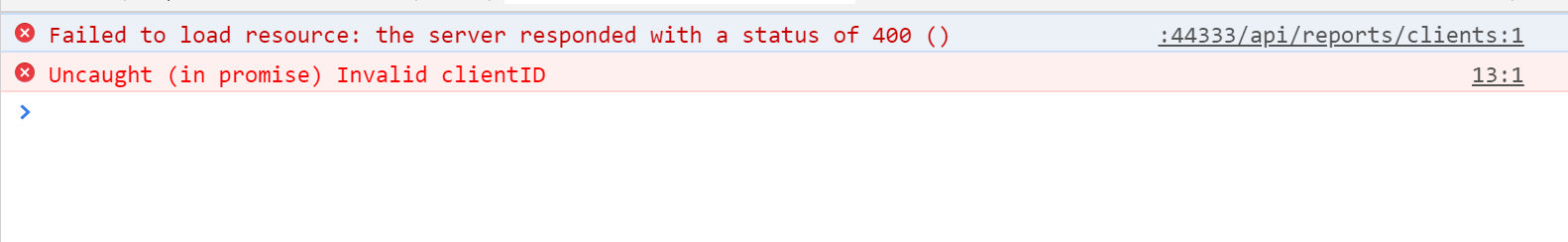 I've made further progress and I seem to now finally have the report viewer loading. However, having hard coded the report name and a single parameter for it to get it to load the page loads with the usual "loading..." message and then becomes blank. If I review the page for errors I can see the attached error - "Failed to load resource: the server responded with a status of 400 () - .../api/reports/clients:1" and "Uncaught (in promise) Invalid clientID"