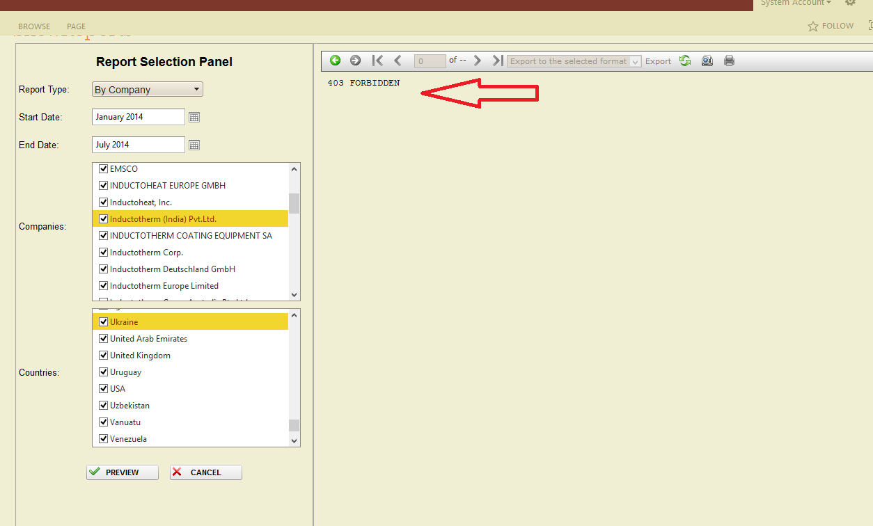 when i run report it gives following error 403 FORBIDDEN