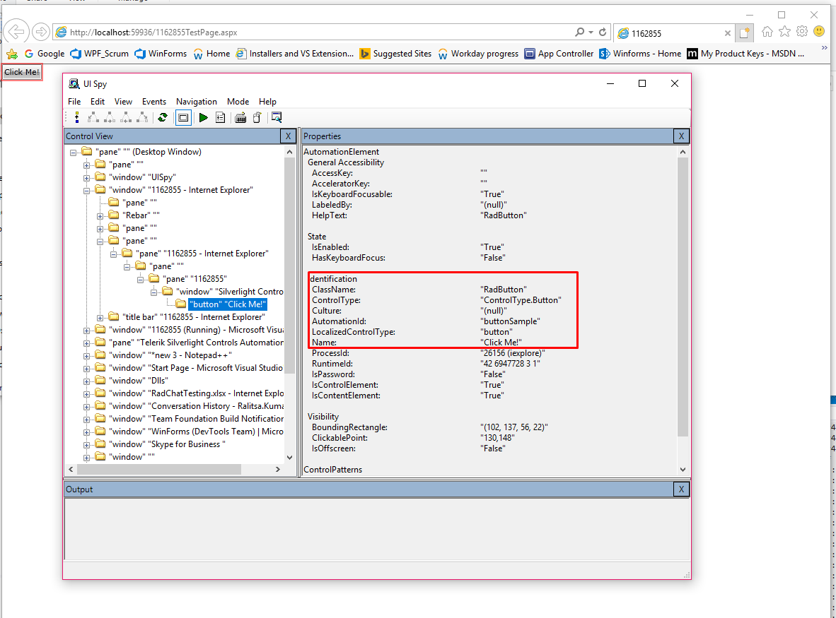 We are having an application which is built of Telerik's RAD Controls. We are trying to automate this application using UI Automation framework of Microsoft. As we are trying to identify objects using UISpy tool, none of the controls in the application is getting identified starting from Silverlight window. Can you please help us on how to proceed doing automation with Microsoft UI Automation.
