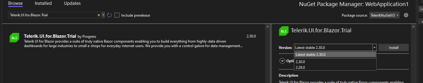 It seems like you have forgotten to update your Trial for Telerik Blazor. The latest version for that is still 2.30 which is a really old version, from 2019 I think, so people trying out that won't be close to the current version. Also if they buy a license without updating thinking they already have the latest version as they just installed it. It is listed as having been updated December 8 but I doubt that based on the version number. You might want to look into this.