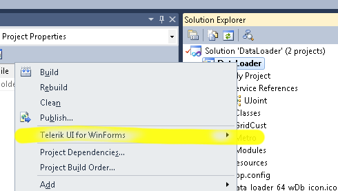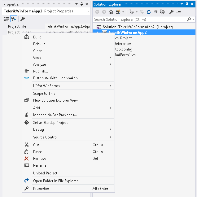 When I create a Telerik Winform project - no problem but when I right-click on the Project under the Solution Explorer in the VS 2017 IDE I was expecting to see the newly added "Telerik UI for Winforms" menu item but it's not there...??