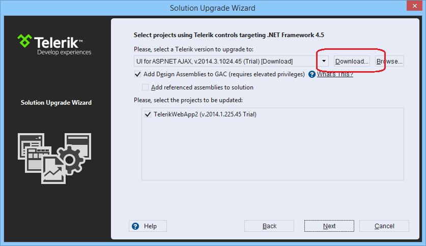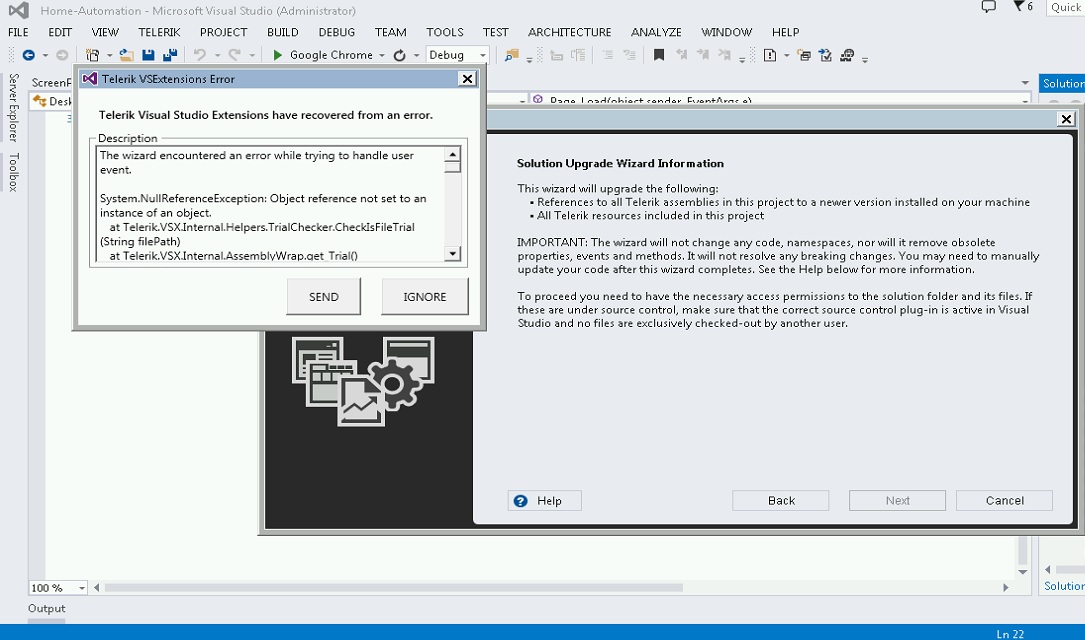 Visual Studio 2013 throwing exception "Telerik VSExtension Error" during upgrade wizard of Asp.Net application. Please see attached image.