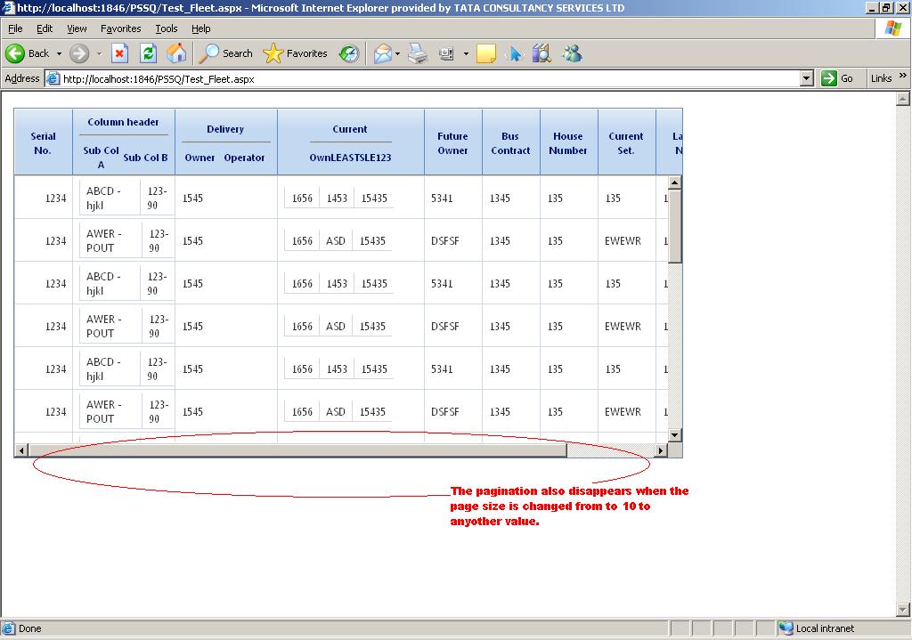 c) If we change the page size in pagination, the pagination also disappears. Refer "Screenshot4.JPG" .
