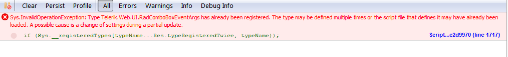 Type Telerik.Web.UI.RadComboBoxEventArgs has already been registered.