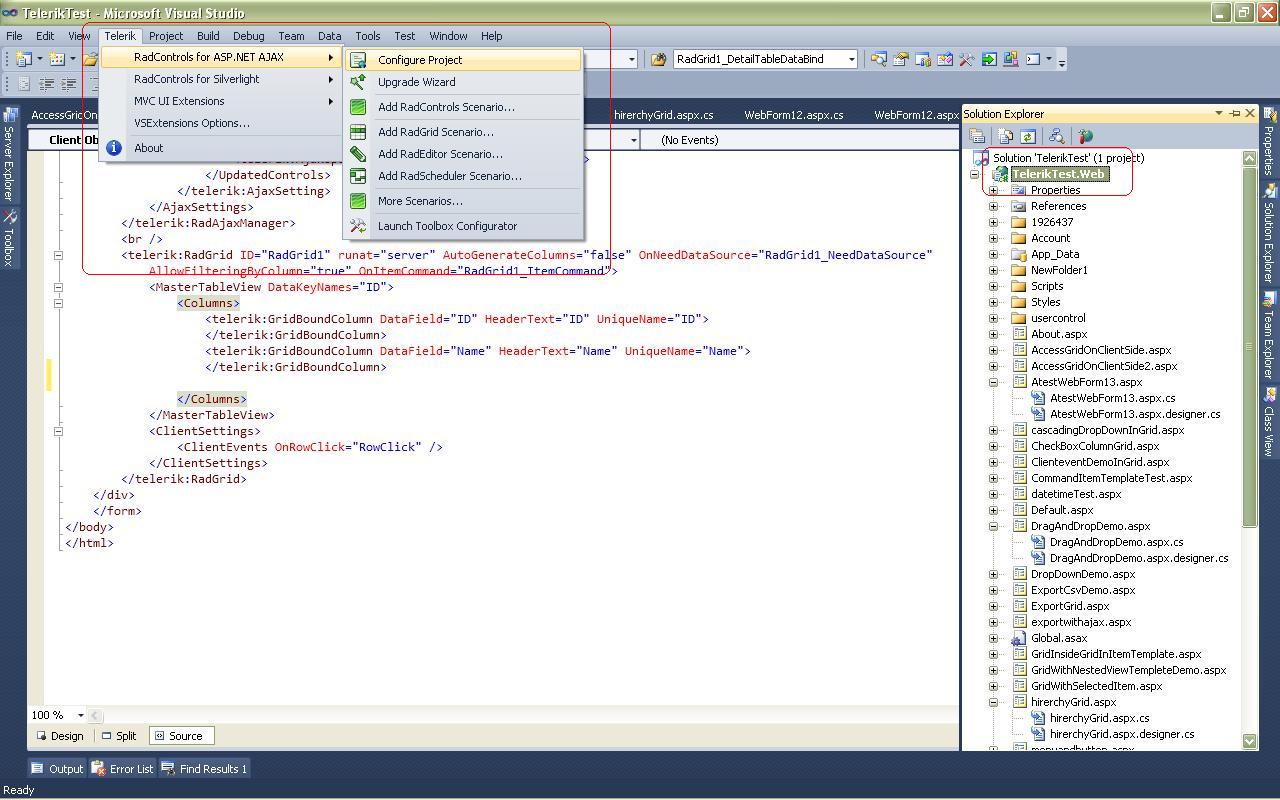 3. Opened a "clean" version of the project (the one that has previous set of Telerik controls) that I tried to upgrade earlier.