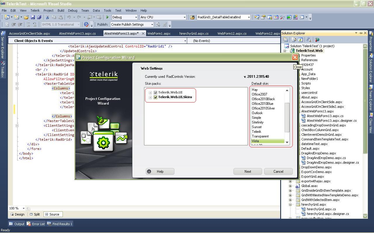 1. I downloaded full package for this version directly from the Telerik website (vs using Wizard that I did earlier).