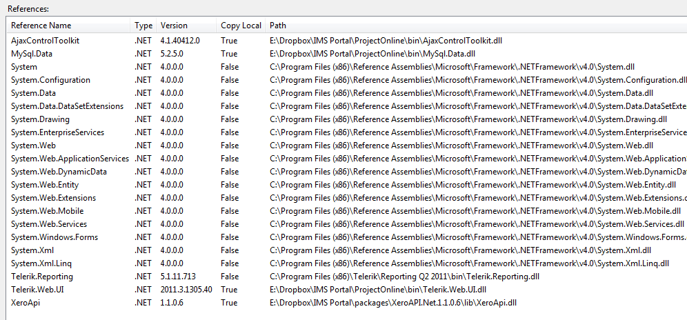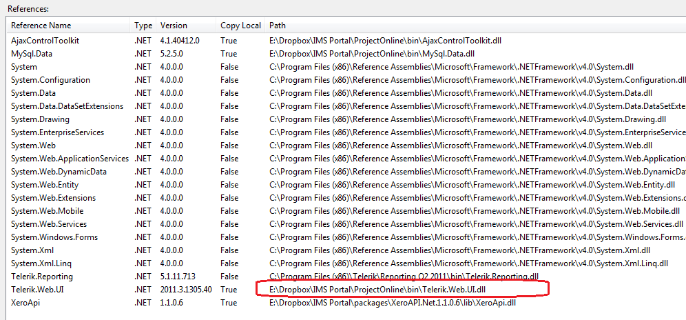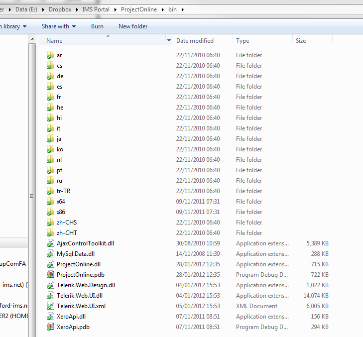 Did you looked for the files in this location E:\Dropbox\IMS Portal\ProjectOnline\bin (see the attached image) ?