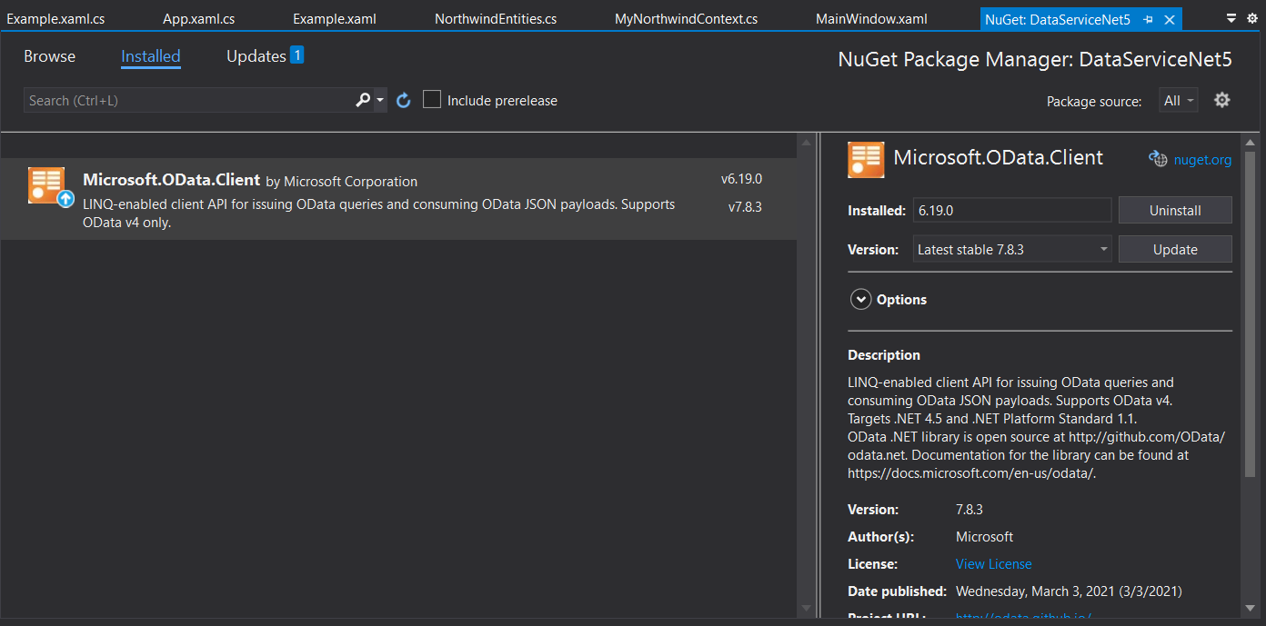I'm looking for a NuGet Package that contains the Telerik.Windows.Controls.DataServices library that is binded against the latest Microsoft.OData.Client library.