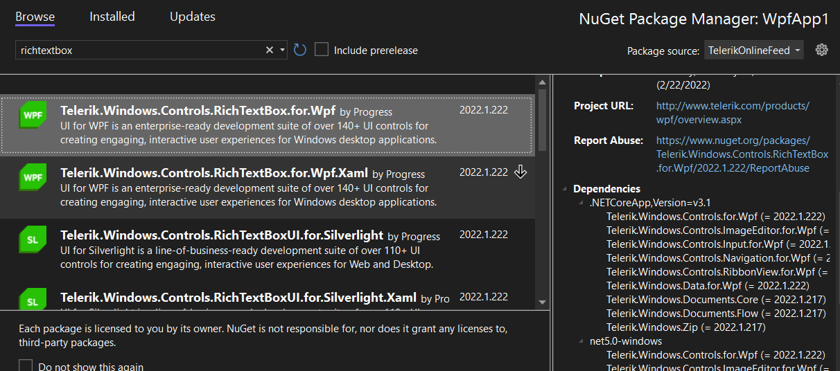 Indeed, Telerik.Windows.Controls.RichTextBox.for.Wpf is a new package that contains merged assemblies for the control and is available for .NET Core applications only.