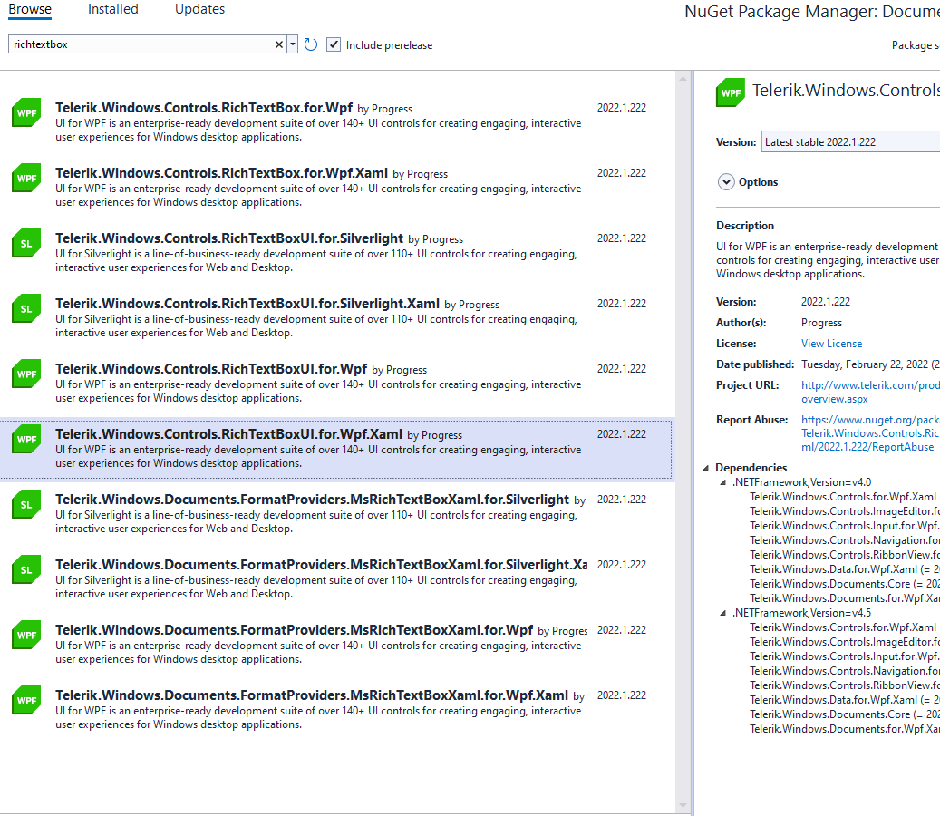 Telerik.Windows.Controls.RichTextBoxUI.for.Wpf is the WPF for .NET Framework 4.x