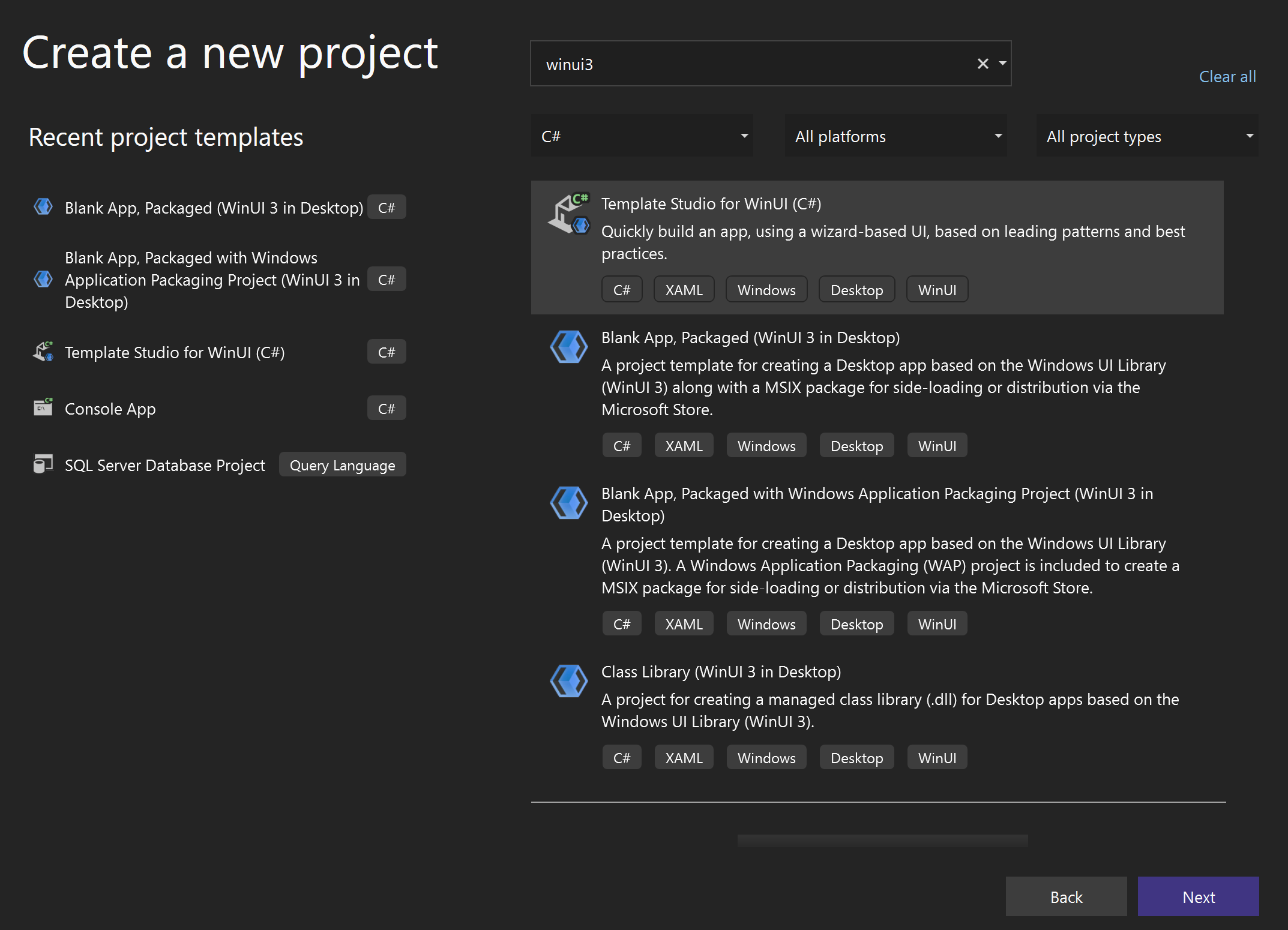 As you can see I have the templates for WinUI. What am I missing?