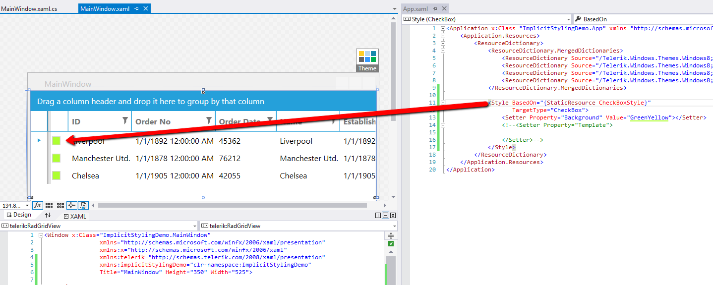 <Style BasedOn="{StaticResource {telerik:ThemeResourceKey ThemeType=telerik:Windows8Theme, ElementType=CheckBox}}" TargetType="CheckBox" >