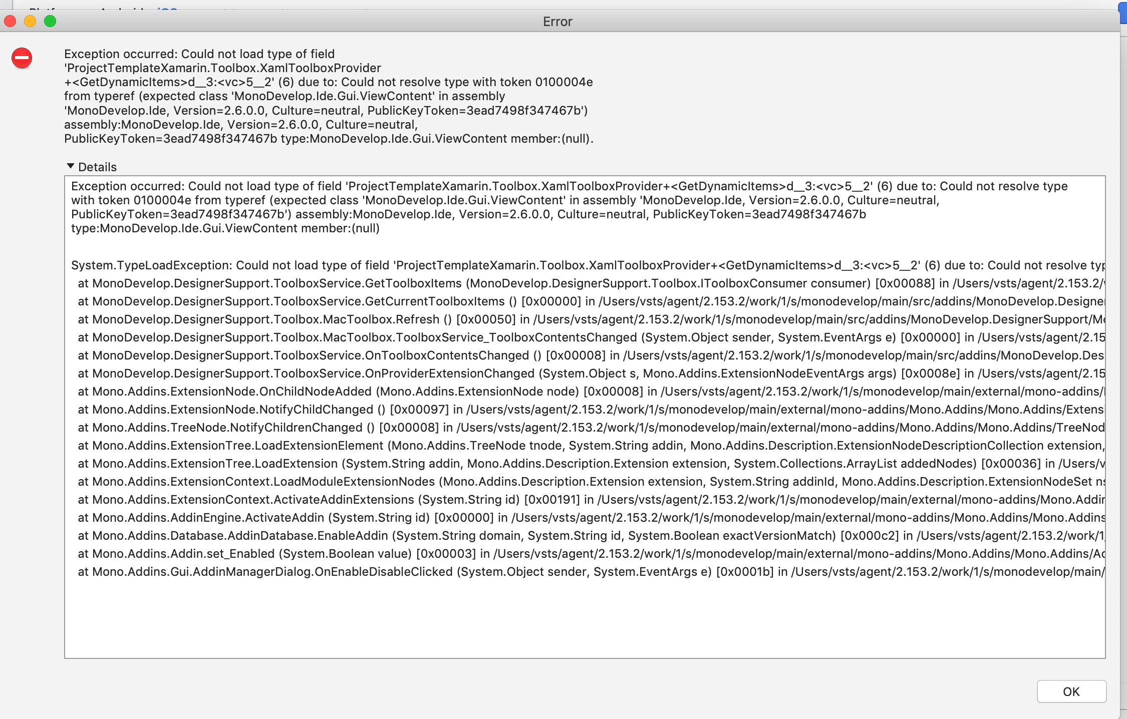 Once I installed the Telerik Xamarin Add-In extension via the Extension manager. I can no longer open any .xaml or .cs file, well I can open them but the contents are not displayed.