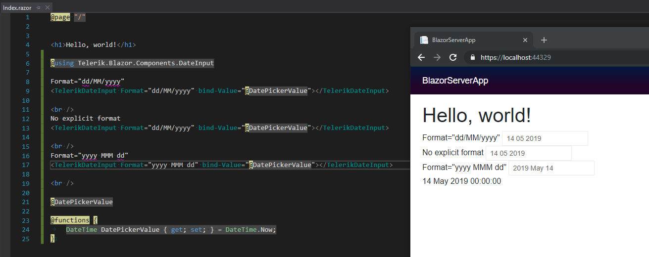 <TelerikDatePicker Format="dd/MM/yyyy" bind-Value="@DatePickerValue" ValueChanged="@OnDateChanged"></TelerikDatePicker>But the Picker still displays the date as yyyy-MM-dd.