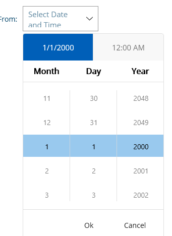 <telerikInput:RadDateTimePicker x:Name="fromDateTimePicker" HorizontalOptions="CenterAndExpand" VerticalOptions="CenterAndExpand" Margin="10" HeightRequest="50" WidthRequest="150" />