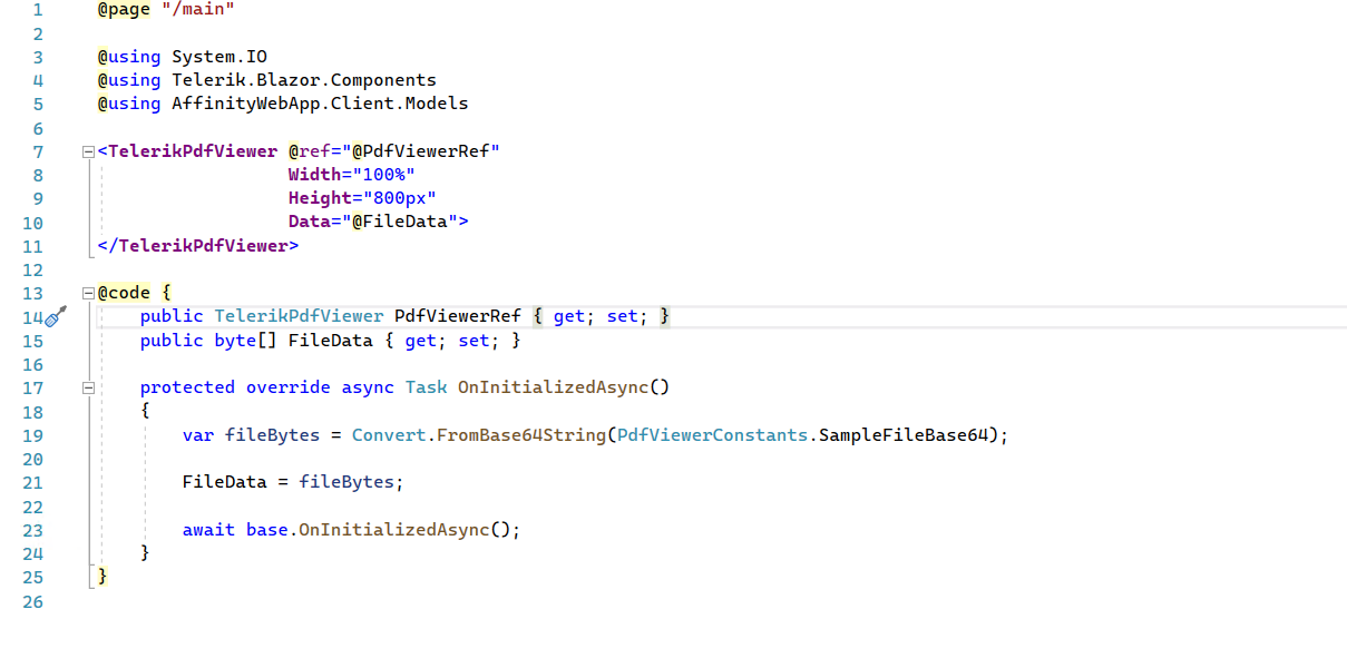 I have upgrade telerik version to 3.6.1 to use TelerikPdfViewer, I just copy paste code you provided. A working toolbar exist but it not rendering pdf to view. What can be reason?