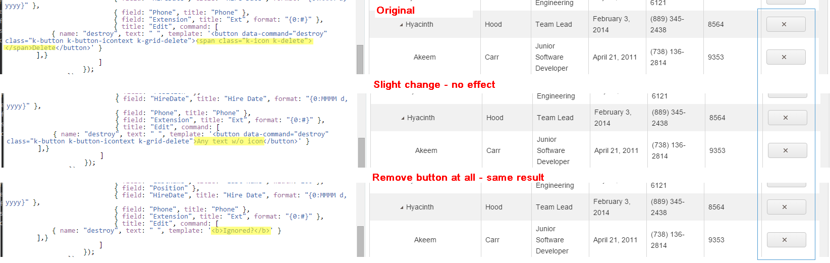 I want to ask the question about template for command button in TreeList. It seems it it ignored in case of TreeList, although it work fine in Grid (see attached picture).