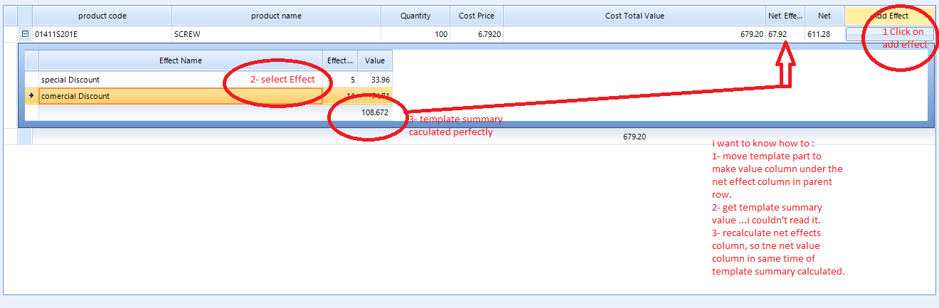 simply in this event or (any thing you suggest) i want to see summary of effects value column in net effects in parent row , and recalculate all summaries in grid.
